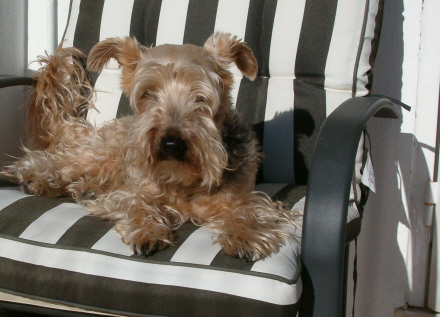 Hønsehunden Mia ligger på sin nye favoritplads for enden af sofaen og nyder livet. Den trækker langsomt vejret, snorker højlydt og strækker benene i ny og næ. Og hun prutter sikkert også, når vi går ud af stuen.