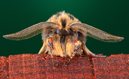 Når larverne er færdigudviklede, kommer de ud af puppen og er dækket med stikkende hår, som indeholder blærer med syre og giftstoffet Thaumetopoea. Dem kan larverne 'skyde' mod en eventuel fjende, hvis de føler sig truet, og modtageren kan efterfølgende opleve irritation i ører, øjne, næse, hals og på huden.