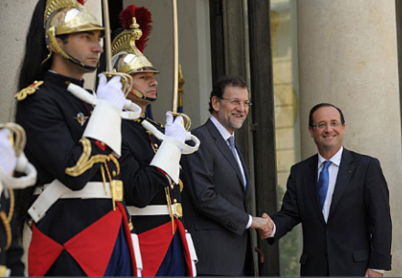 Den spanske Premierminister spiste i går frokost med den franske Præsident, Francois Hollande, i Élysée-Palæet i Paris. Mødet foregik i en ”excellent” atmosfære, og bagefter belærte Hollande sin spanske kollega om, hvordan man sparer og viser respekt.