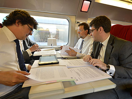 Mariano Rajoy med sin stab i ”Vogn 1”
