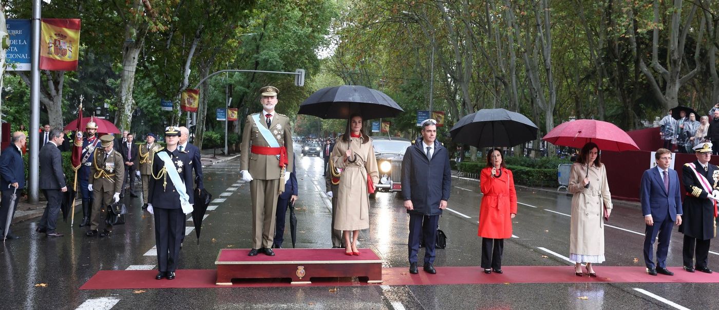 Kong Felipe VI forestod sammen med dronning Letizia og kronprinsesse Leonor den højtidelige hyldest til nationalflaget og militærparaden på Plaza de Neptuno. Efter ceremonien, der var præget af regnvejret, gav kongeparret sammen med Leonor den traditionelle reception på det kongelige palads i Madrid for at fejre nationaldagen.