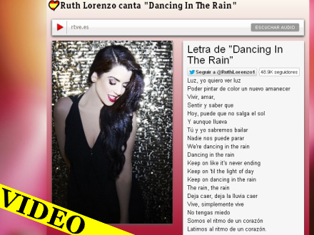 Ruth Lorenzo skal repræsentere Spanien med sangen 'Dancing in the Rain' ved dette års Europæiske Melodi Grandprix. Da showet løber af stablen i maj i Danmark, får hun nok rigeligt med muligheder for at gøre netop det. Altså at danse i regnen.