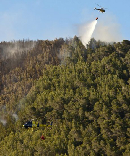 Adskillige helikoptere kæmper for at slukke branden i Serra de la Morna, i kommunen Sant Joan Ibiza Labritja på Ibiza