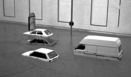 Men regnen var ikke den slags, som man normalt kendte til for årstiden. Den var som tykke gardiner og så intens, at det både var umuligt at se længere end et par meter og bygningen på den anden side af gaden var væk. På lidt over én time faldt der 160 liter pr. kvadratmeter.
