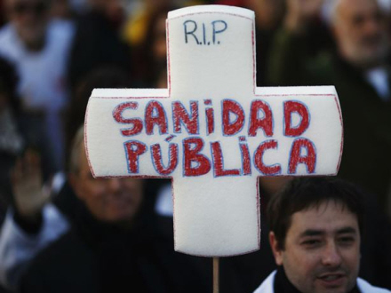 Tusinder af mennesker gik lørdag på gaderne i 15 spanske storbyer i protest mod nedskæringer og privatisering af sundhedsvæsenet.