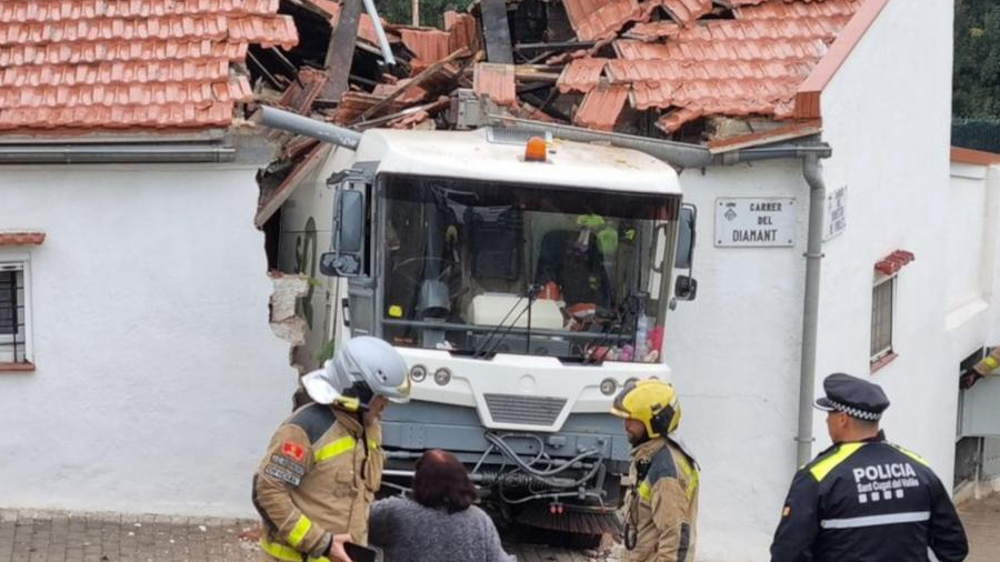 Renoveringslastbil kørte i går direkte ind i et hus en catalansk by, og boligen blev stort set delt i to.