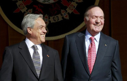 Mørke rande under kongens øjne var det helt store samtaleemne, da den chilenske præsident, Sebastian Piñera, i går kom på besøg hos Kong Juan Carlos i kongepaladset i Madrid.