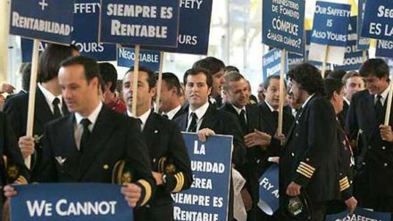 Piloterne protesterer mod Iberias planer for oprettelse af et lavprisselskab, Iberia Express, som fra marts næste år skal stå for selskabets flyvninger på kort- og mellemdistancerne. Piloterne mener, at det nye lavprisselskab vil føre til tab af hen ved 5.000 arbejdspladser inden for Iberia.