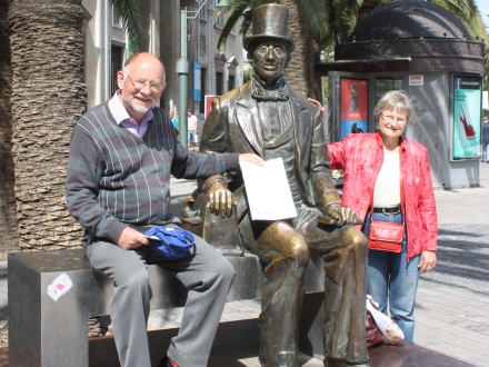 Vi var i Málaga den 24. april 2012 og her satte vi os på bænken ved siden af H.C. Andersen. Han udtalte sig begejstret om byen: