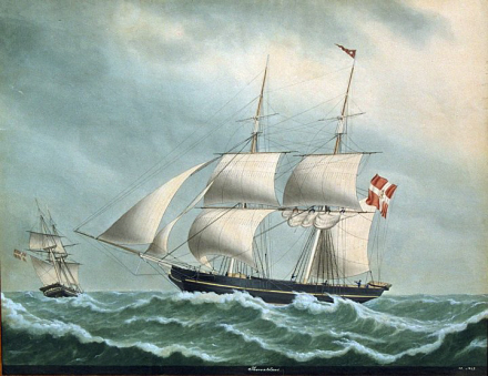 Maleri af en dansk brig fra H.C. Andersens tid