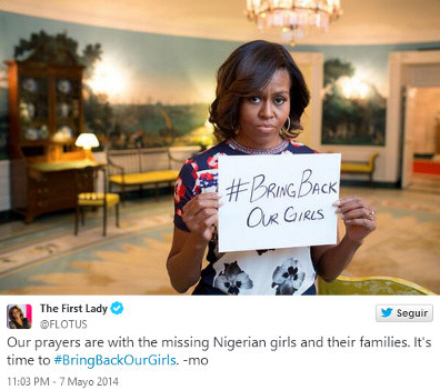 Med hensyn til hendes kommentar om, at Michelle Obama skal fjerne sin video, siger Manjón, at ”hun ikke har noget problem med at poste et foto af sig selv med et skilt, hvori hun kræver befrielse af de nigerianske piger, bortført af den islamiske gruppe Boko Haram”, men problemet er, at det jo ikke siger ikke noget om, hvad der sker i Gaza.