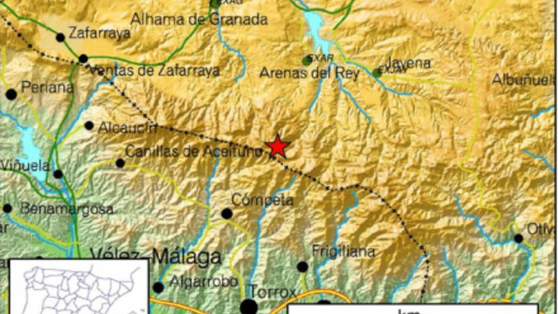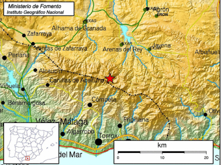 I går kom der til gengæld et meget kraftigt jordskælv i det sydlige Spanien. Ifølge Spaniens Meteorologiske Institut kom skælvet klokken 20:36 (18:36 GMT) og havde epicenter under byen Arenas del Rey i Granada Provinsen – gangske tæt på Competa, hvor der var en stor skovbrand for nylig.