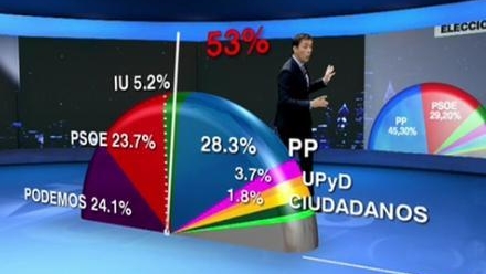 ”Resultatet af afstemningen til parlamentet i 2015 er nu kendt: Der er et markant flertal til de socialistiske partier med Podemos, PSOE og IU.”