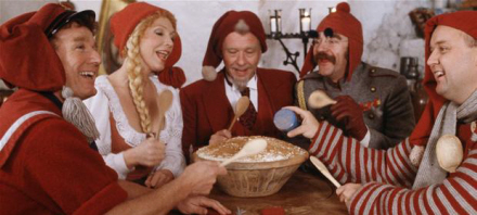 Nissebanden om grøden, hvor der både er kanel, sukker og smørklat