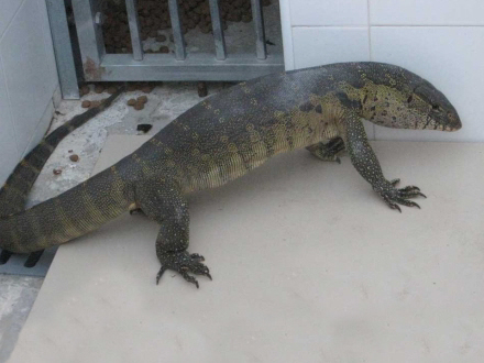 Øglen, der er af arten Varano, er et imponerende dyr. Den kan altså blive over en meter lang, har en smidig krop, stærke ben, en kraftig kæbe med spidse tænder og en kløvet tunge. De lever langs floder, er meget hurtige svømmere, kødædende og spiser alle de smådyr, de kommer i nærheden af som mus, fisk, snegle, frøer, æg og andre små firben.