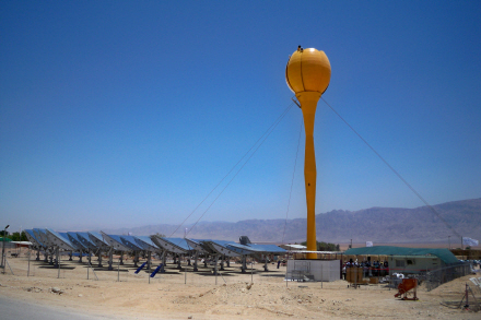 I midten af 52 solpaneler i energiparken Platforma Solara de Almeria tårner der sig en 35 meter høj, gul tulipan. Den israelske virksomhed AORA Solar står bag den bemærkelsesværdige gas-turbine, som leverer 100 KW hver time og yderligere 170 KW varmeenergi som biprodukt.