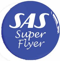 Da Sebastian går ud af flyet, vinker styrmanden til ham og giver ham en badge med teksten 'SAS Super Flyer'.
