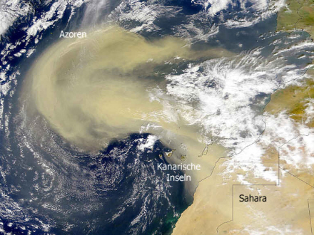 De østlige dele af de Kanariske Øer bliver i dag ramt af en ny sandflugt fra Sahara.