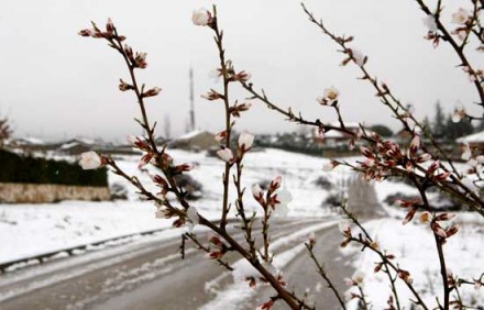 Kirsebærtræer med sne på
