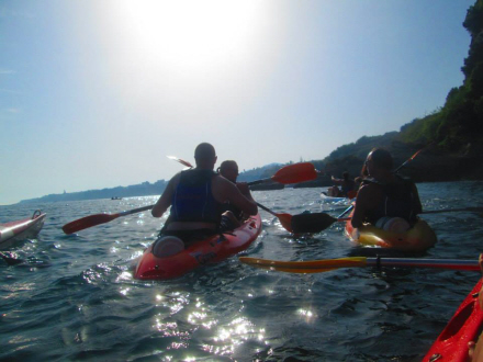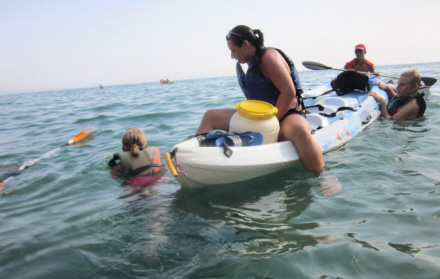 Dagen skulle dog ikke gå med kun at kigge på havet. Vi skulle jo også sejle lidt i det. Jeg fik en fin rød kajak, en fin gul pagaj og chefens datter, Patricia, som makker. Jeg efterlod derfor mit mål om at krydse middelhavet, i strandkanten.