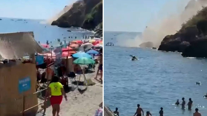 En rolig og solskinsrig søndag ved stranden i Maro, Málaga, blev pludselig afbrudt af et dramatisk klippeskred nær Cascada Grande, der er et yndet udflugtsmål for både lokale og turister.