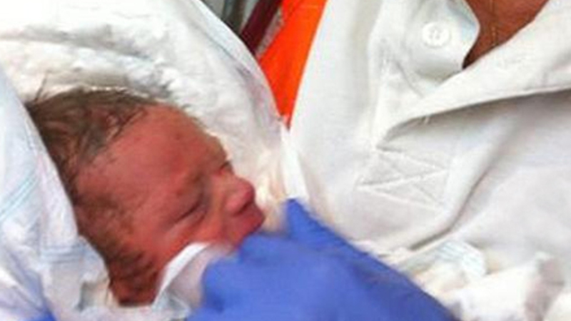 Spædbarnet blev hjulpet fri af et hold brandfolk, efter at en nabo i bygningen havde hørt klynkelyde, som hun først troede, var en kattekilling.