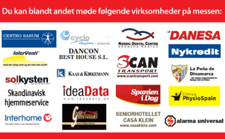 I alt 19 udstillere vil øse løs af viden om netop deres specialområde: computer, forsikring, ejendomsfinansiering, juridisk rådgivning, et seniorhotel, den danske supporterklub for fodboldklubben i Málaga og mange flere.