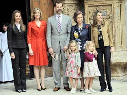 De to prinsesser, Helena og Cristina, havde hverken ledsager eller børn med, hvorimod kronprinseparret dukkede op med deres to døtre, Sofia og Leonor. Det betød, at kronprinsen var eneste mand blandt de mange kvinder.