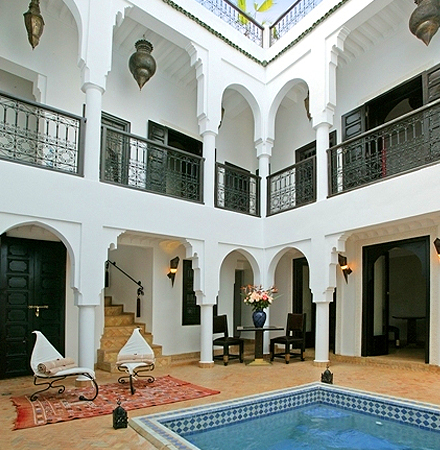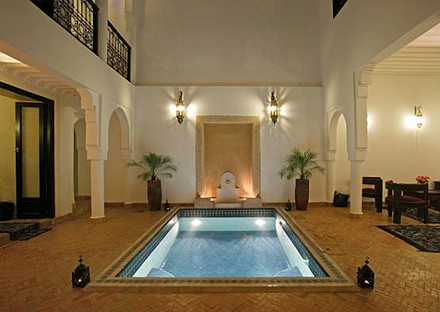 Marrakech havde fået plantet et elendigt indtryk i kroppen hos os begge. Heldigvis var ALT fredeligt bag den lukkede dør, og en pool i midten af gården havde en meget beroligende indvirkning på os.