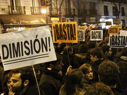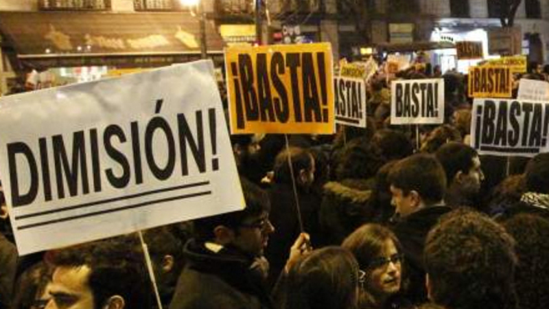 Omkring et tusind personer demonstrerede i går aftes ud for det konservative partis hovedsæde i Madrid i protest efter offentliggørelsen af regeringspartiets sorte regnskabsbøger. Statsanklageren mener, at der er tilstrækkeligt med bevismateriale til at hive partiets ledelse ind til afhøring, og flere oppositionspartier kræver nu regeringens afgang.