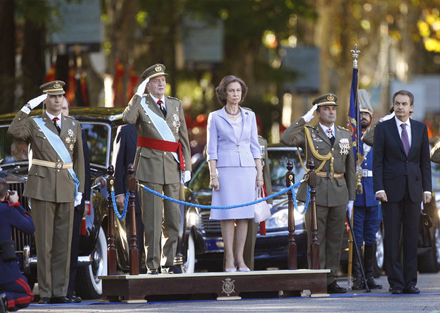 Der blev råbt farvel med pift og fløjt til Spaniens premierminister, José Luis Rodríguez Zapatero, under den årlige, bombastiske militærpa...