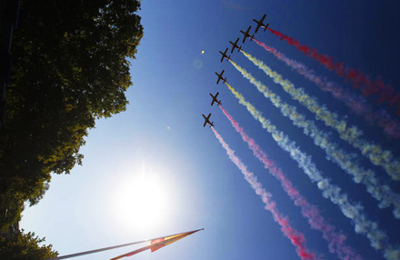 Inden paraden, der startede kl. 10.35 og varede 40 minutter, meddelte forsvarsminister Carme Chacon, at regeringen vil trække sine F-18 kampfly i Libyen tilbage. I et interview til TVE sagde Chacon at 'situationen i landet nu var under kontrol'.