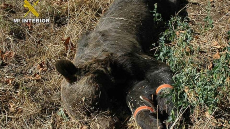 De to anholdte er sigtet for brug af ulovlige jagtmetoder og for at have dræbt en gråbjørn, der er udryddelsestruet i Spanien.