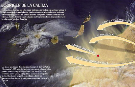 Sandstøvet blev holdt oppe af vinde med en styrke på 75 kilometer i timen. I løbet af små 40 minutter nåede sandmasserne fra Sahara til Gran Canaria, og derefter videre til Fuerteventura, Lanzarote og Tenerife.