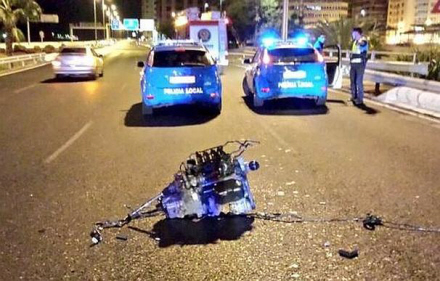 Motoren blev slynget ud af bilen og lå på vejen