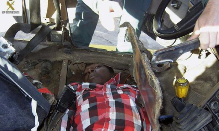 Da de fik skilt instrumentbrættet ad, lå der en ung kvinde gemt, som manden havde forsøgt at smugle over grænsen til Spanien. Den 22-årige konganeser var i sølle stand og havde problemer med at trække vejret.