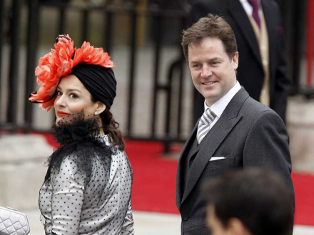 Den britiske vicepremierminister Nick Clegg ankommer til Westminster Abbey med sin spanske hustru Miriam González