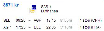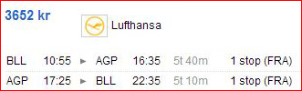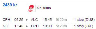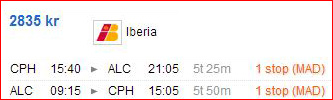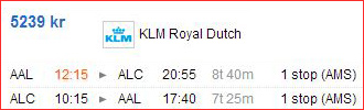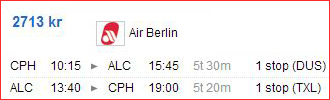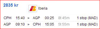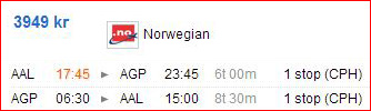 Pristjekket er fortaget fra København, Billund og Aalborg til henholdsvis Málaga og Alicante. Alt er prioriteret efter billigste pris.
