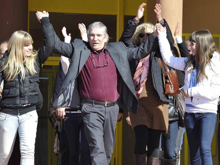 Miguel Montes Neiro blev modtaget af sine søskende og sine døtre, der havde stået og ventet uden for fængslet lige siden tidlig morgen.
