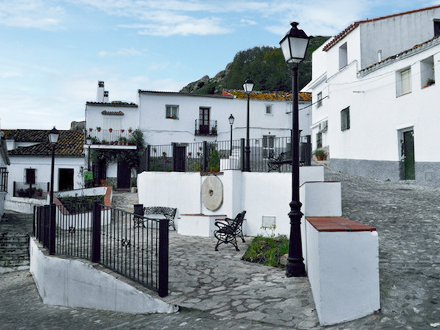 Lidt efter passerer vi Olof Palmes-plads, som i skulpturel form viser en kopi af de hulemalerier, der er fundet i 'La Cueva de Laja Alta' tæt ved Jimena, og som vidner om, at der har boet mennesker langs Hozgarganta-floden siden tidernes morgen. Det er i sandhed et historisk landskab, vi her besøger.