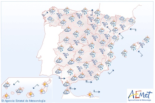 Langs resten af Middelhavskysten stort set uændret, der kommer en del sol og temperaturerne stiger til 23 grader.