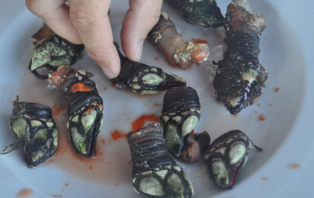 Det er måske ikke ligefrem det mest lækre at se på, men på en tapasbar i Santiago de Compostela skulle det være noget af en oplevelse. De skulle efter sigende smage forbløffende godt! Og med et glas køligt Albariño kan det ikke gå helt galt!