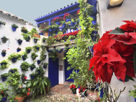 ”La Navidad en los Patios” byder på blomsterdekorerede gårdhaver med vinterens mest kendte blomster som azalea, alpeviol og julestjerner i røde, lilla og lyserøde nuancer.