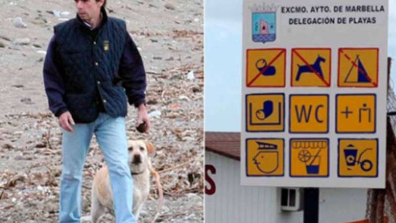 Aznar luftede sine to hunde på en strand i Guadalmina i påsken, og det har fået oppositionspartiet PSOE til at spørge på et kommunalbestyrelsesmøde, om eks-premierministeren vil få en bøde i henhold til lokalloven, som kræver, at hundene skal være i snor.