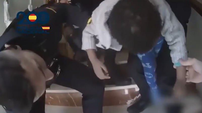 Efter at være blevet alarmeret af CIMACC 091, drønede betjentene hen til en lejlighedsopgang i Puente de Vallecas-kvarteret i Madrid, hvor en mand råbte på hjælp, fordi hans søn ikke trak vejret. Drengen var bevidstløs.
