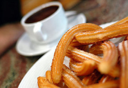 En portion 'churros' - spanskrør, med chokolade på en af de mange barer og restauranter, er bestemt ikke af vejen...