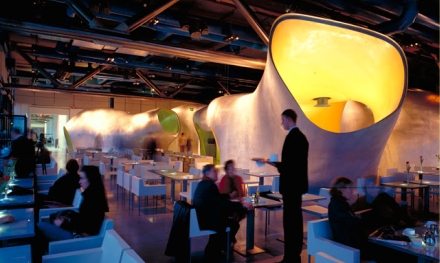 Helt i tråd med den noget specielt-udseende bygning i Paris placeres den spanske afdeling i glashuset, der ligger mellem Muelle Uno og Muelle Dos i Málagas havn.
