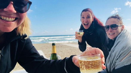 Ikke megen nedbør, så skål blot løs i cava på stranden!