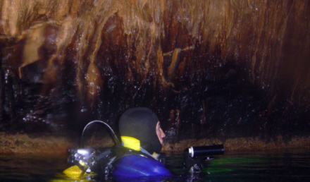 I dagslys på et normalt dyk forsvinder farverne efterhånden, som du kommer dybere ned. Men i grotter er der ikke noget naturligt lys, og man har derfor lommelygter med. Det kunstige lys giver dig alle farverne, som de er i virkeligheden.