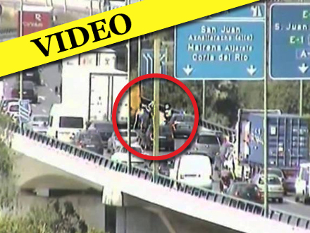 Hændelsen skete den 18. april klokken 13 lige ved broen Reina Sofía, da myldretiden på ringvejen var på sit højeste.